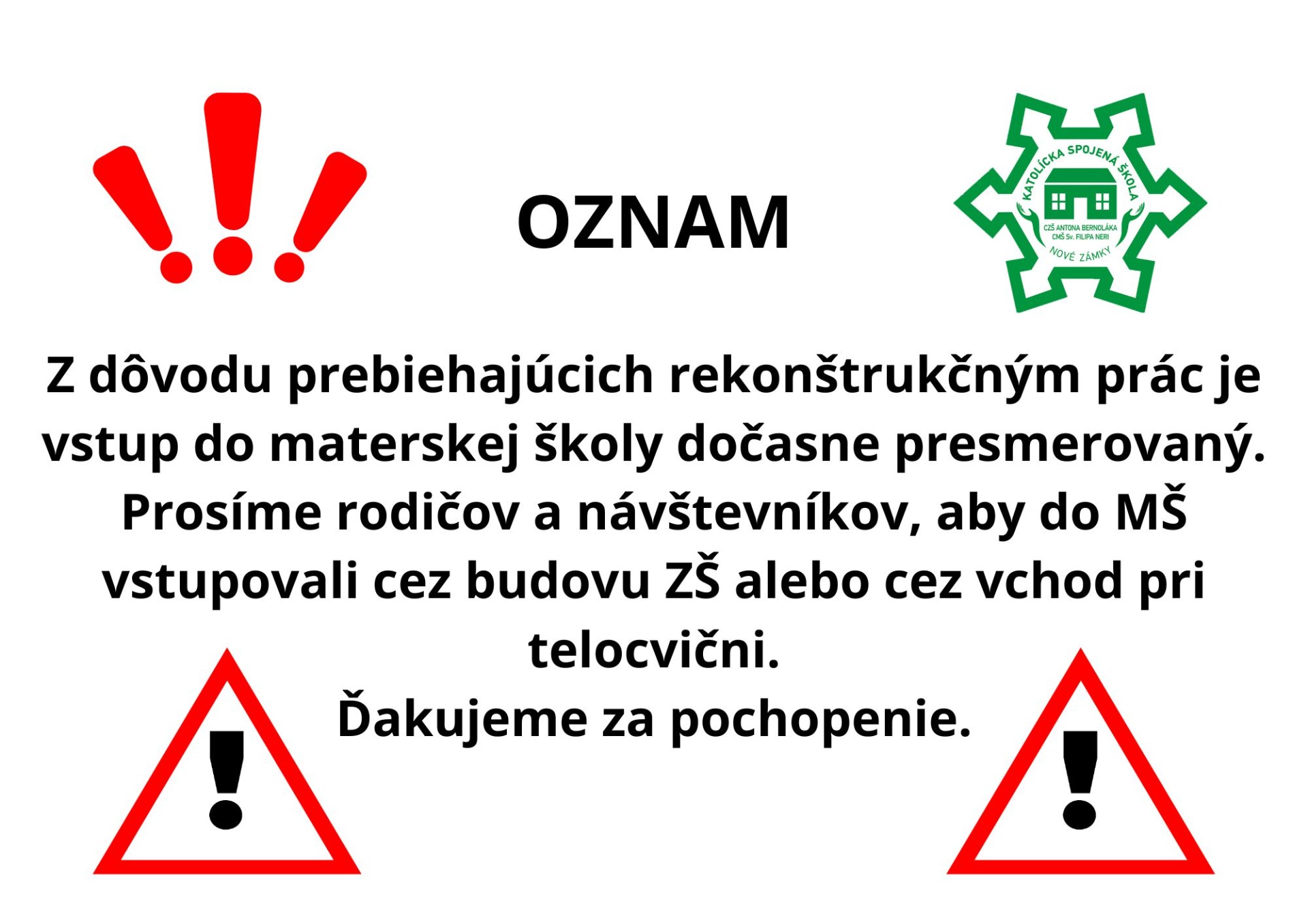V našej materskej škole žijeme s deťmi jedno veľké kresťanské spoločenstvo. Znamená to, že deti vychovávame podľa kresťanských zásad, v duchu Evanjelia tak aby bol zabezpečený ich všestranný harmonický rozvoj v oblasti duševnej, duchovnej a telesnej.